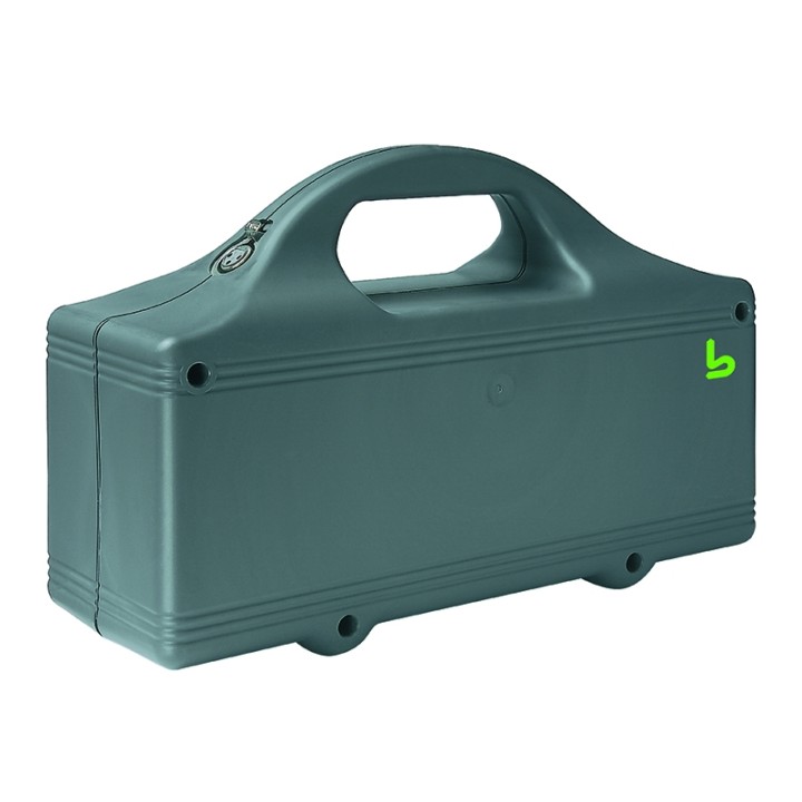 Grâce au câble de raccordement de 5 m, la batterie peut être placée au mur, au plafond, ou au sol. Une fixation spéciale et un matériel de montage complet sont fournis.