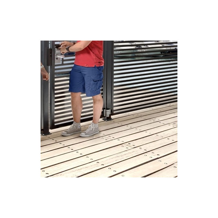 La charnière Dino est une charnière à double roulements dans un coffre en aluminium. Grâce aux roulements inoxydables vous ouvrez avec souplesse et confort des portes. Montage facile et rapide avec Quick-Fix.