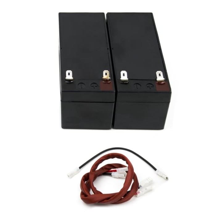 Kit batteries composé de 2 batteries rechargeables 1,2 Ah avec câbles de connexion à la platine et plaque de fixation