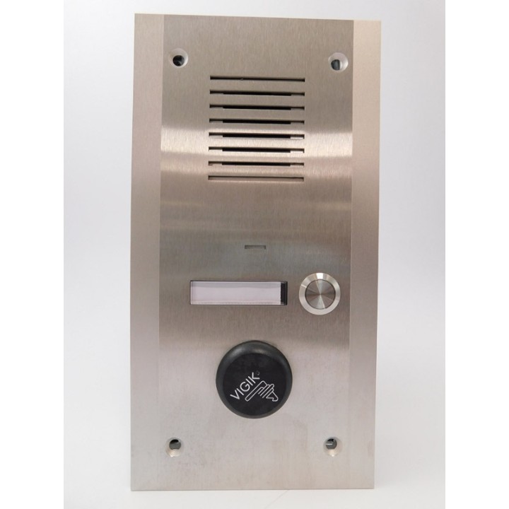 INTRABOX DATA ECO INTERPHONE AUDIO APPEL GARDIEN 1 BOUTON D’APPEL avec lecteur de proximité Vigik® + 1 centrale de gestion Vigik® 1 porte et/ou 100 noms (03-0102) + 1 module de transmissions 4G-IP - inclus gestion à distance et mises en relation audio 15 ans - Pré-équipé vidéo - Pose en encastrement - Finition inox