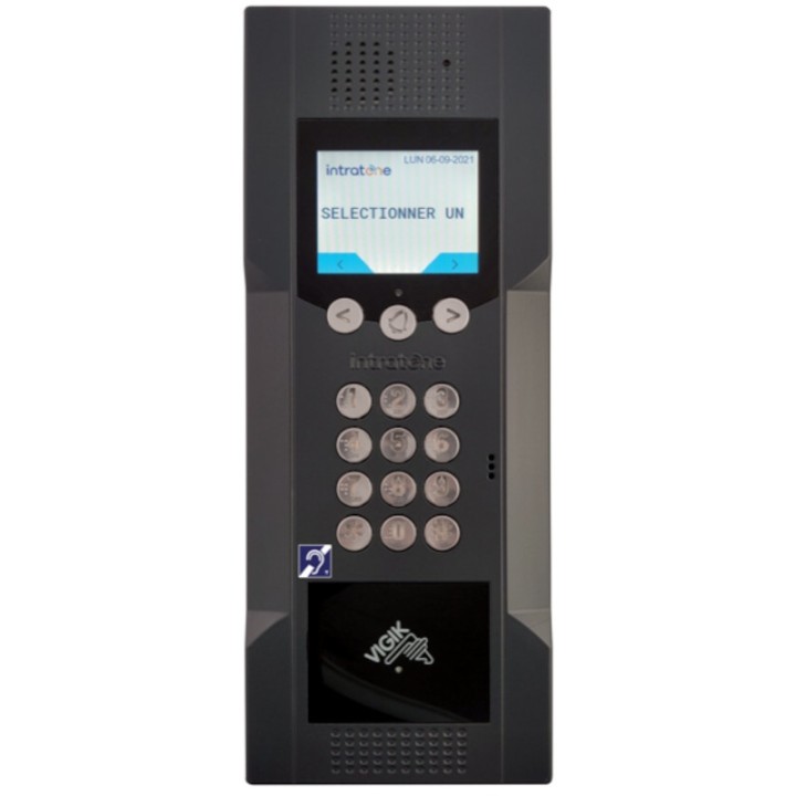 INTERPHONE VIDÉO INTRACODE à défilement de noms avec clavier codé 12 touches rétro-éclairées et lecteur de proximité Vigik®