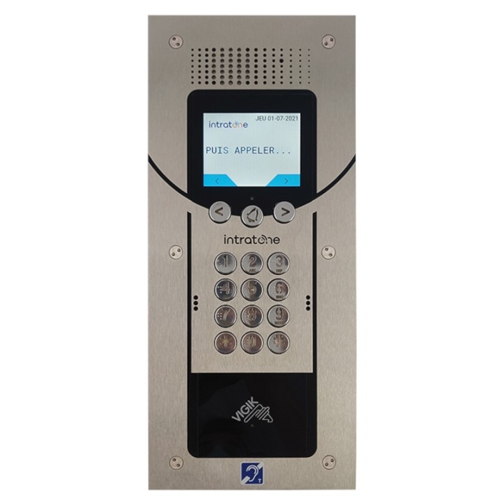 INTERPHONE VIDÉO VENDONE ÉCRAN COULEUR à défilement de noms avec clavier codé 12 touches rétro-éclairées et lecteur de proximité Vigik® mains-libres - Pose en encastrement