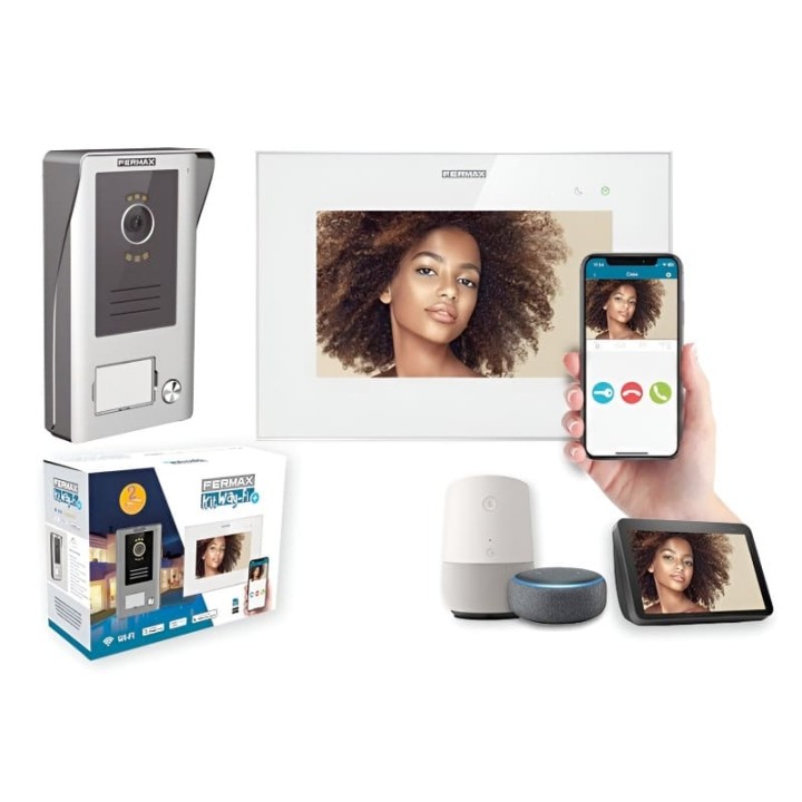 Kit pour logement unique parfaitement adapté à une famille grâce à ses fonctionnalités. Le Moniteur 7" et la platine permettent une grande connectivité avec le Wi-Fi, le renvoi d'appel vers des smartphones et tablettes , mais aussi la compatiblité avec Alexa et Google Home. Il est possible de générer des QRCode à donner à ses invités pour qu'ils puissent ouvrir les accès en les montrant à une caméra du kit.