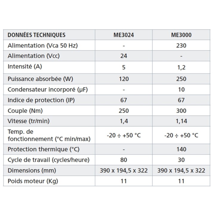 - Auto-apprentissage des fins de course en ouverture et en fermeture;