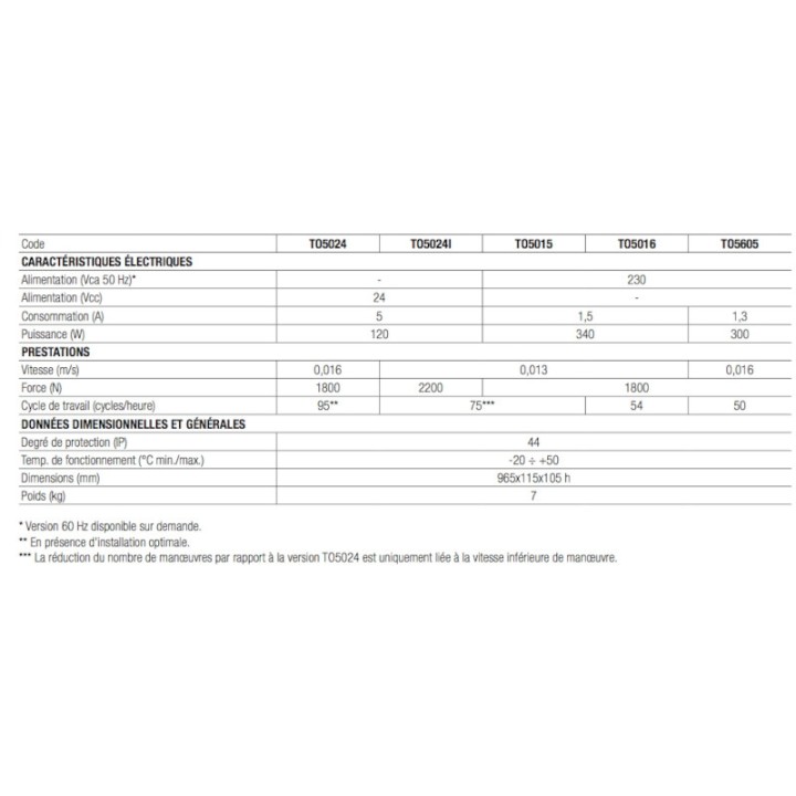 • TO5024 2 Motoréducteurs électromécaniques irréversibles à montage en applique avec butée mécanique en ouverture.